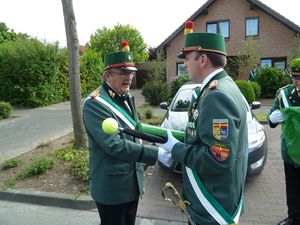 Pünktlich zum Schützenfest hatten sich die Eisheiligen aus dem Staub gemacht und so machte sich eine große Anzahl von Schützen auf, den amtierenden König Heinz-Dieter Tölle und seinen Hof von seiner Residenz Am Engelberg abzuholen und sie durch unseren Ort zu begleiten.