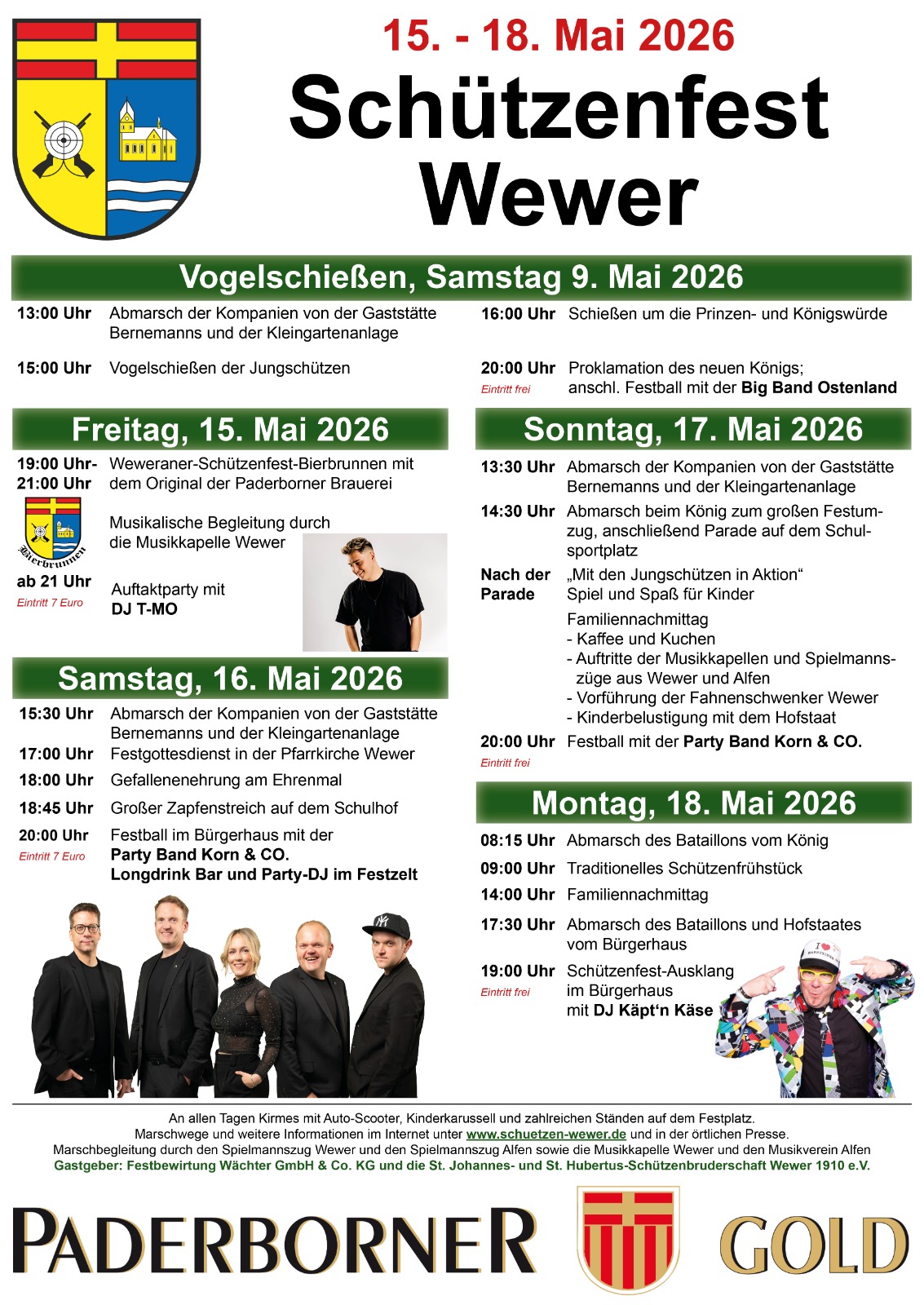 Vom 15. bis 18. Mai 2026 lädt die Schützenbruderschaft wieder herzlich zum traditionellen Schützenfest ein. Bereits am Samstag, den 9. Mai 2026, starten die Feierlichkeiten mit dem Vogelschießen. Um 13:00 Uhr treten die Kompanien von der Gaststätte Bernemanns und der Kleingartenanlage zum Abmarsch an, bevor um 15:00 ...