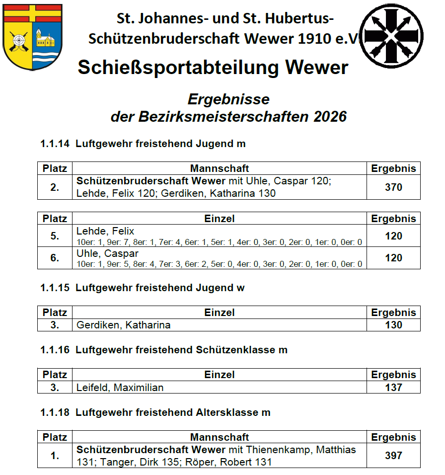 Am Dienstag, den 17.03. fand das Bezirksjungschützenschießen auf dem Elsener Schießstand statt. Hier konnte Caspar Uhle mit 29 Ringen sich bei den Schülern und Rene Behrendt mit 21 Ringen bei der Jugend gegen ihre Kontrahenten durchsetzen. Beide vertreten den Bezirksverband Paderborn-Stadt am 13.06. auf dem Diözesan...