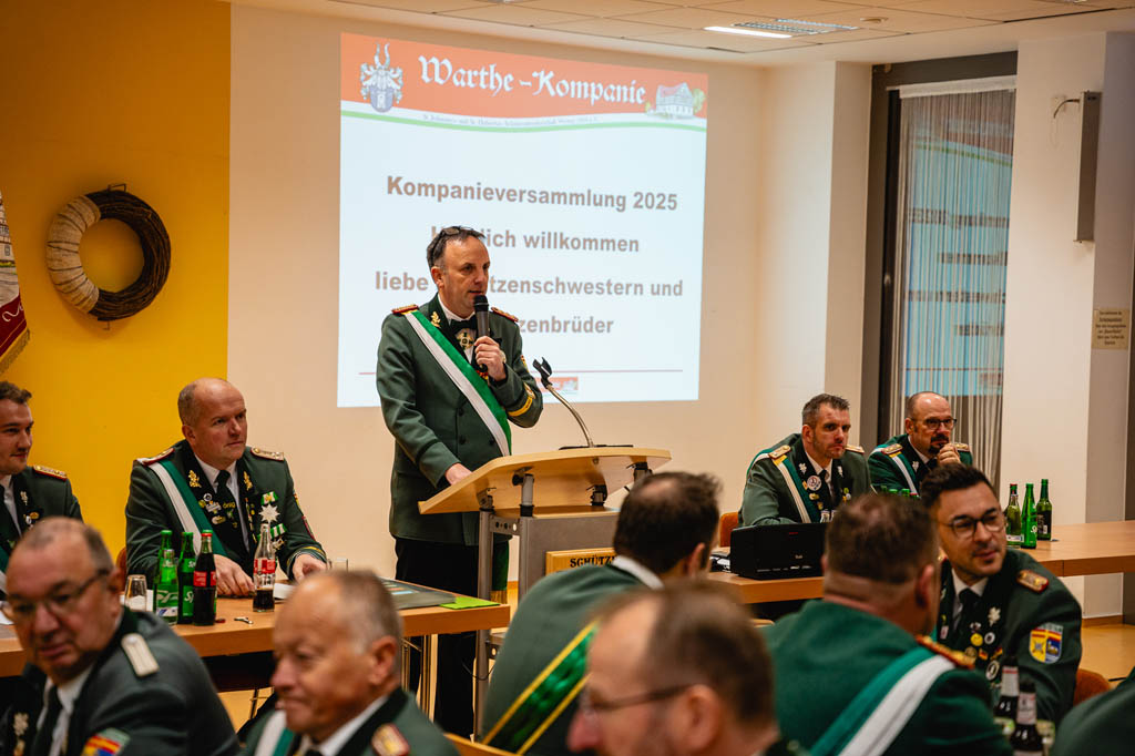 Am 22. November 2025 hat Die Warthe-Kompanie der St.-Johannes- und St.-Hubertus-Schützenbruderschaft Wewer im Bürgerhaus turnusgemäß ihren Kompanievorstand neu gewählt. Unter großer Beteiligung der Mitglieder wurden die bisherigen Amtsinhaber Hauptmann Michael Neumann, Hauptfeldwebel (Spieß) Jürgen Schütte sowie Zugoffizier Jürgen Sill einstimmig in ihren Funktionen bestätigt.