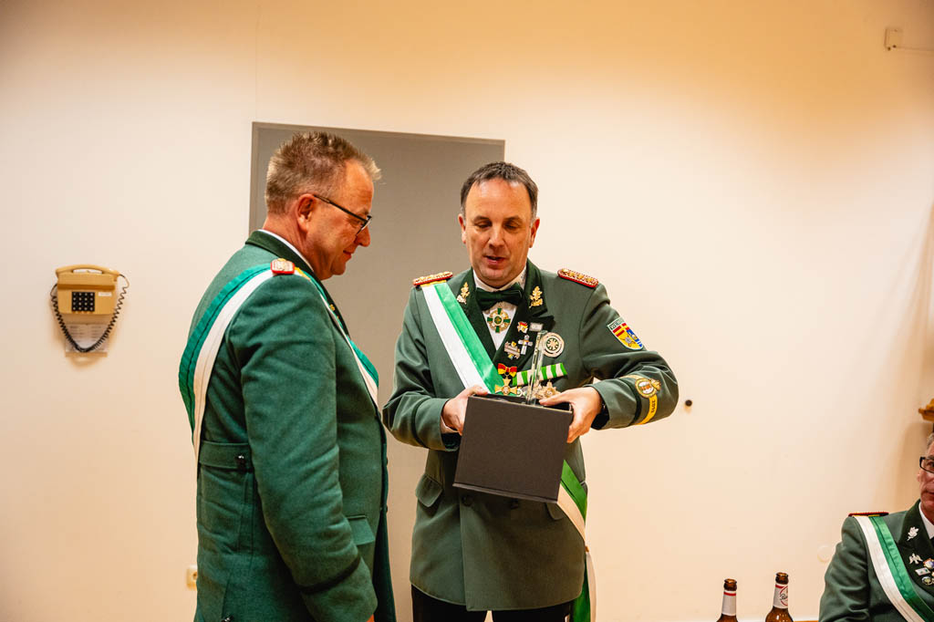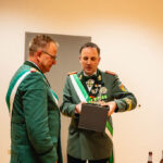 Ein besonderer Moment der Versammlung war die Ehrung der ausgeschiedenen Vorstandsmitglieder, Hans Dieter Thiele (stellv. Hauptmann), Markus Hericks (Zugoffizier), Tobias Gravenstein (stellv. Spieß), Reinhard Schlepphorst (Königsoffizier) und Jürgen Ripping (Fahnenoffizier). Ihnen wurde als Dank für ihre langjährige, engagierte Arbeit im Kompanievorstand eine Erinnerungstafel überreicht. Sie werden dem Bataillon als Ehrenoffiziere vorgeschlagen.