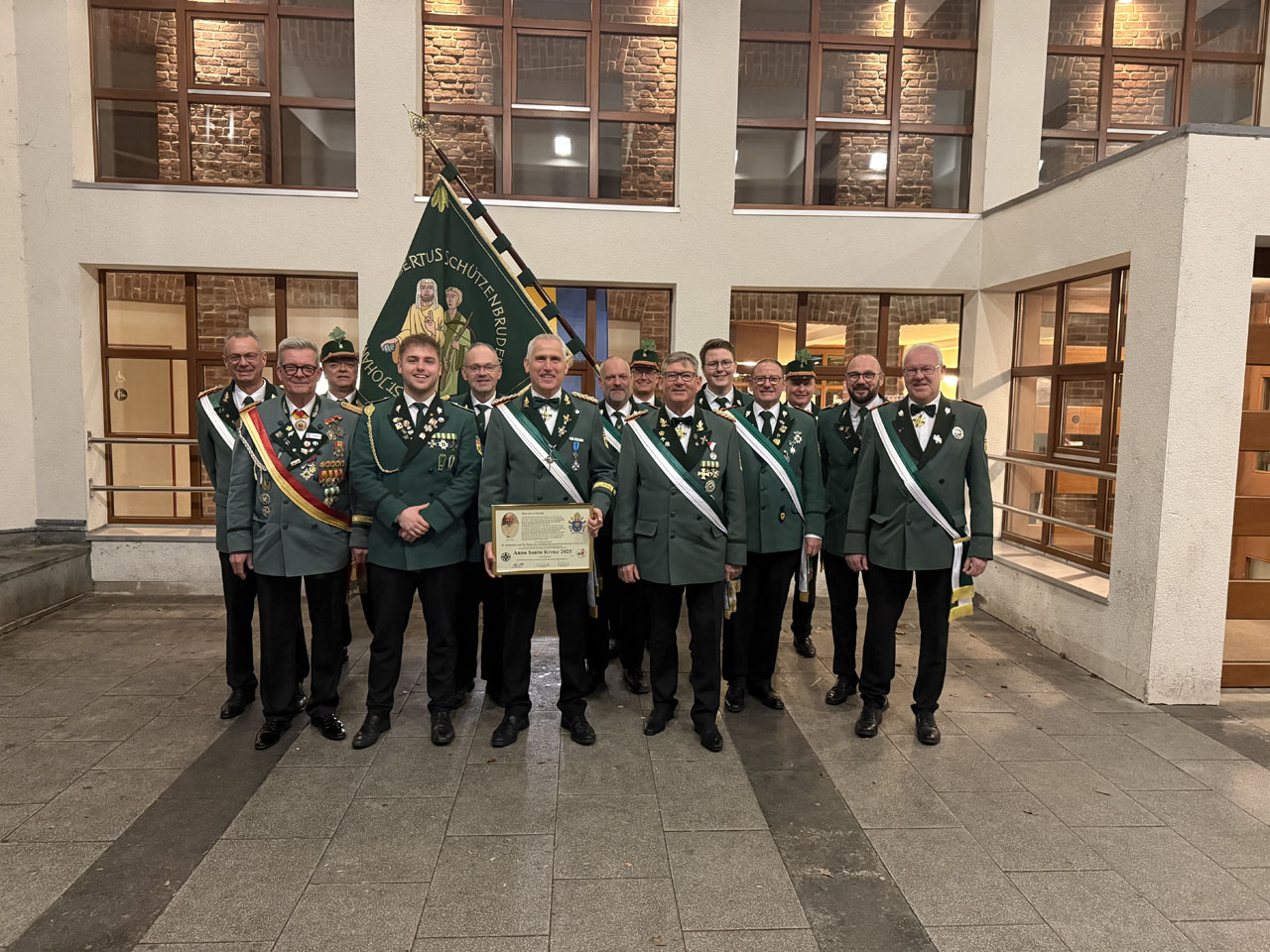 Im Anschluss an den Gottesdienst nahm Oberstleutnant Michael Schadomsky eines der vom Bund gestalteten und von Papst Leo XIV. gesegneten Anno-Santo-Kreuze durch den Bundesvorstand entgegen. Zusätzlich wurde den Geehrten eine Urkunde mit der Überschrift „Spes non confundit“ – „Die Hoffnung lässt nicht zugrunde gehen“ durch den Diözesanbundesmeister Mario Kleinemeier ausgehändigt. Dieses Wort bringt die Botschaft des Heiligen Jahres und die besondere Bedeutung dieser Auszeichnung eindrucksvoll zum Ausdruck.